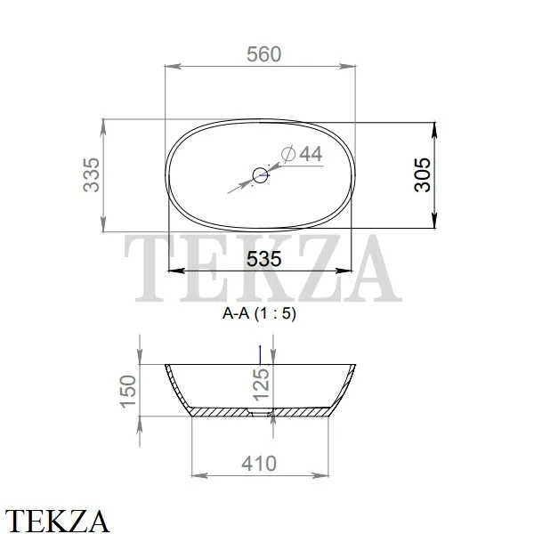 Раковина накладная, без перелива SALINI SOFIA из минерального литья S-Sense, глянцевая.