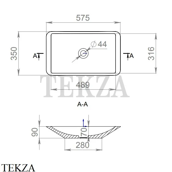 Крышка слива изготавливается в цвет раковины с нанесением фирменного логотипа.