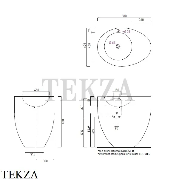 Дополнительно: донный клапан PIL01, сифон SIFR и крепеж LGFI
