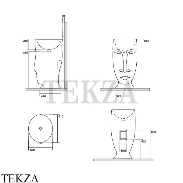 Раковина напольная керамическая KERASAN ARTWORK Moloco свободностоящая.
