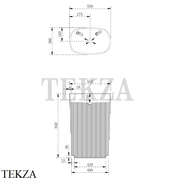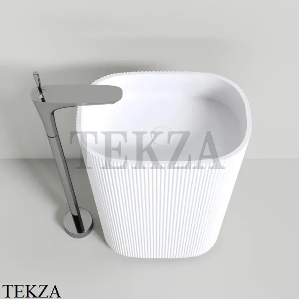 Раковина напольная гофрированная слив в стену, без перелива NT Bathroom NT701 из минерального литья по технологии Solid Surface, матовая.