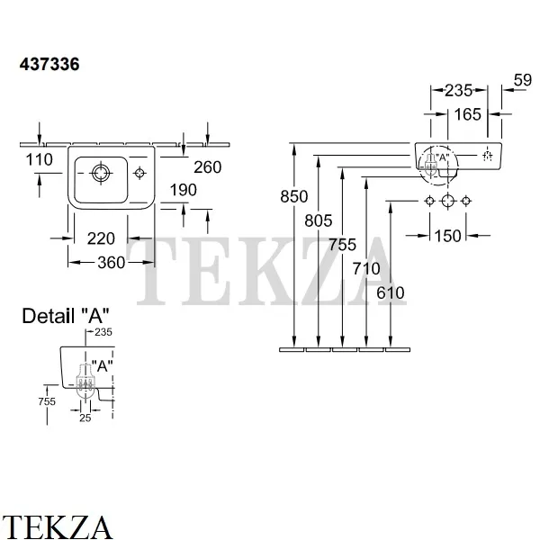 - без перелива 4373 37 XX отверстие для смесителя выбито справа