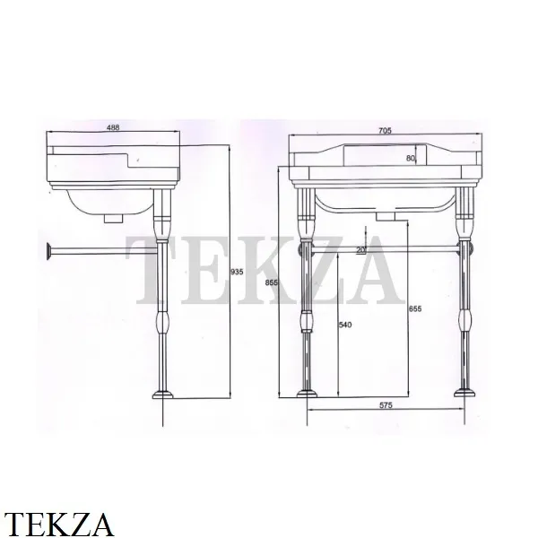 Умывальник на металлических ножках 03.42 Herbeau MONARQUE 03.40 с переливом.