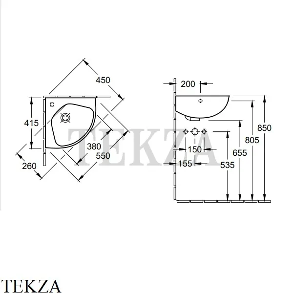 Угловая раковины укороченная Villeroy & Boch O.NOVO с переливом.