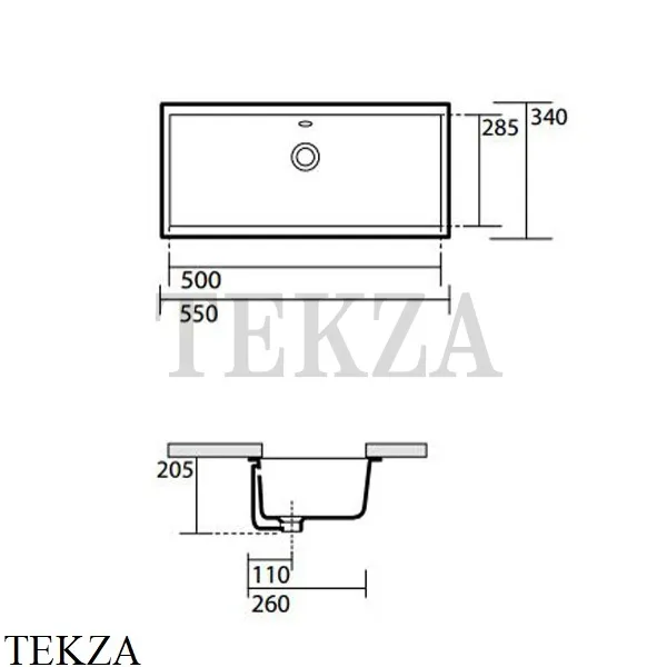 Раковина прямоугольная врезная снизу Kerasan Slim 50.