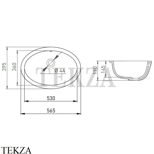 Раковина встраиваемая снизу, с переливом SALINI MAREA 12 из минерального литья S-Sense, глянцевая.