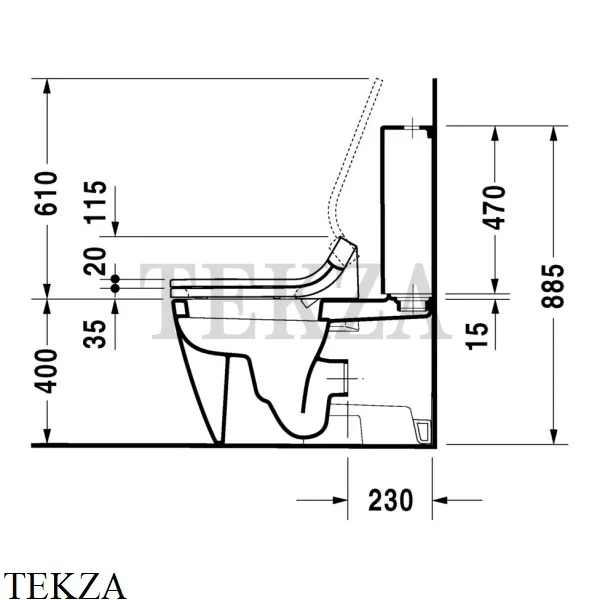 Унитаз напольный комбинированный Duravit Starck 2, с вертикальным смывом