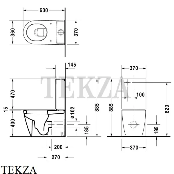 Унитаз напольный комбинированный Duravit Starck 2, с вертикальным смывом