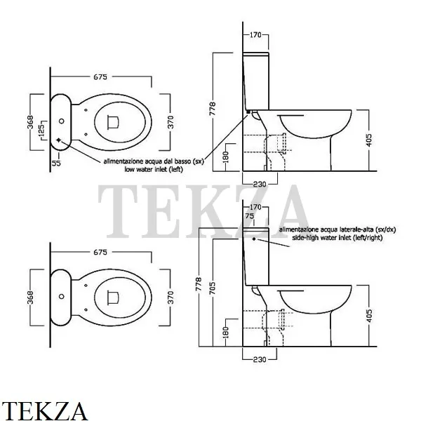 бачок подвод воды сбоку вверху(3/6л.) YXG301