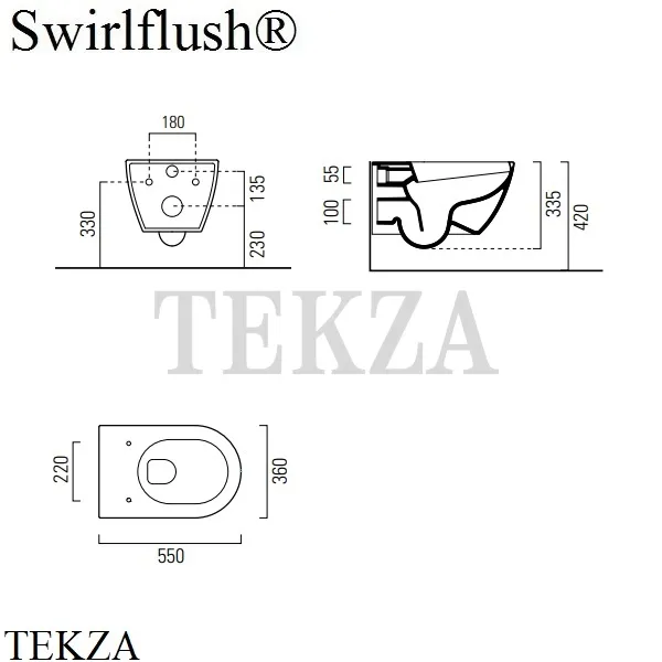 Dual Glaze доступна для навесных унитазов PURA 55 и PURA 50 с системой смыва Swirlflush
