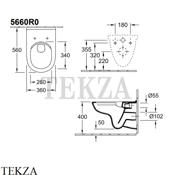 подвесная модель унитаза 5660 R0 01 горизонтальный выпуск, с системой экономии воды AQUAREDUCT®: объем воды для смыва 4,5 литра