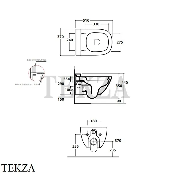 Безободковый унитаз подвесной Globo LAS03BI, слив 3 л., без ободка SENZABRIDA®.