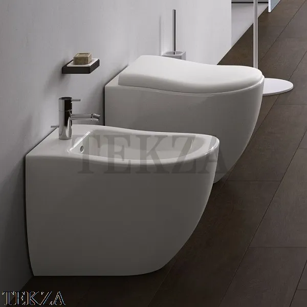 Унитаз приставной Cielo Fluid бифункциональное в комплекте с крепежами и коленом.