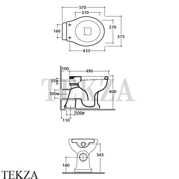 чаша унитаза PA002BI с выпуском в стену