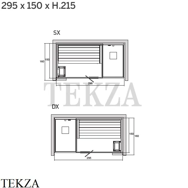Интерьер: Сауна с отделкой и покрытиями из дерева абачи; Душ зона с ламинированными покрытиями