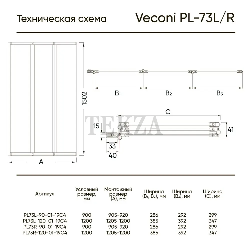 Veconi Шторка на ванну Veconi Palau PL-73L, 900x1500, хром, стекло прозрачное