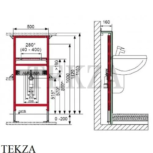 комплект крепежных элементов для установки раковины (установочное расстояние от 40 до 400 мм);