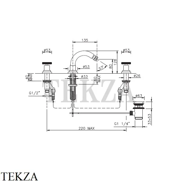 Двухвентильный смеситель для биде Nicolazzi ARENA, с донным клапаном.