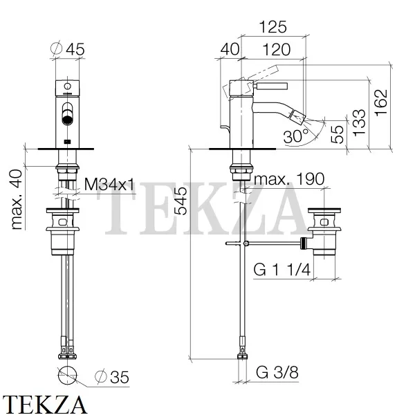 Смеситель для биде Dornbracht Meta.02, с донным клапаном.