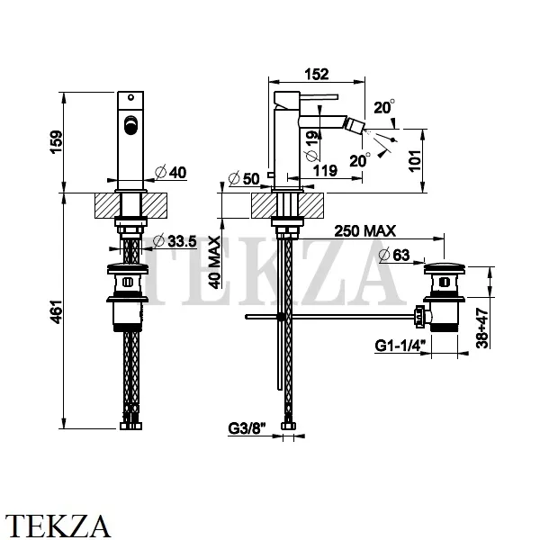 Смеситель для биде Gessi 316 FLESSA, с донным клапаном.