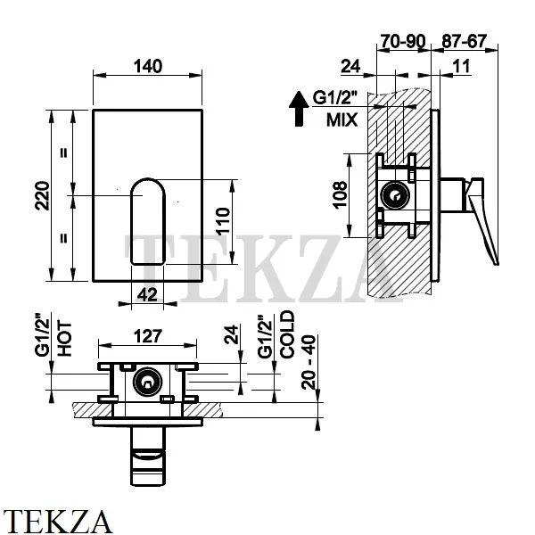 Смеситель для душа на 1 поток Gessi RILIEVO, внешняя часть.