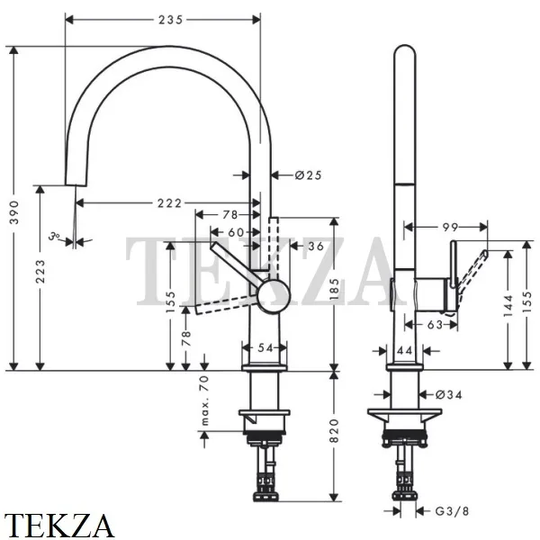 требуется отверстие для смесителя Ø 35 мм
