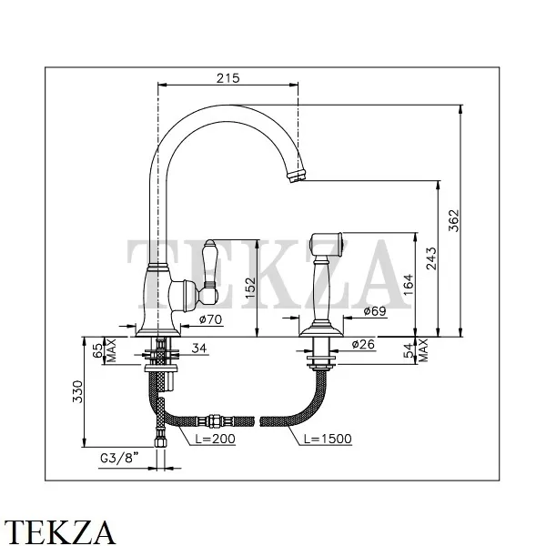 Смеситель для кухни с поворотным изливом Nicolazzi Cucina с отдельным душем.