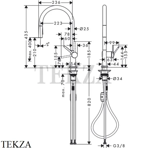Смеситель для кухни однорычажный с вытяжным изливом Hansgrohe Talis M54 210 2jet