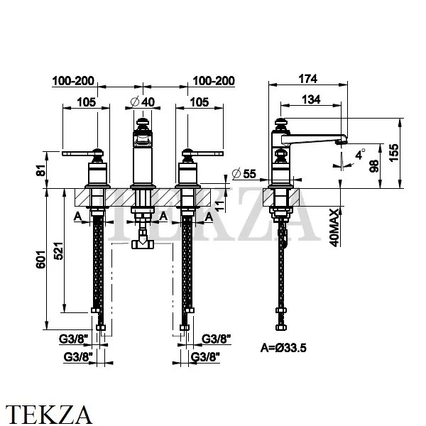 Смеситель для раковины на 3 отверстия средний Gessi VENTI20, без донного клапана