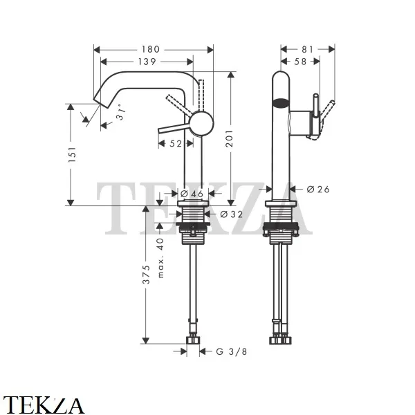 Смеситель для раковины Hansgrohe Tecturis S 150 CoolStart EcoSmart, с донным клапаном push-open.