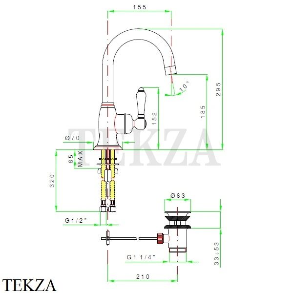 Излив: 15,5 см |