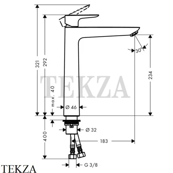 Смеситель для раковины высокий Hansgrohe Talis E однорычажный, без сливного гарнитура.