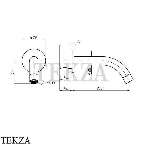 Смеситель для раковины на стену электронный Zucchetti Isy22, внешняя часть.