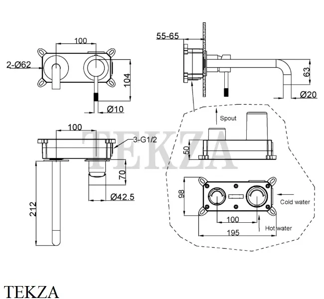 Смеситель для умывальника из стены Boheme Uno.