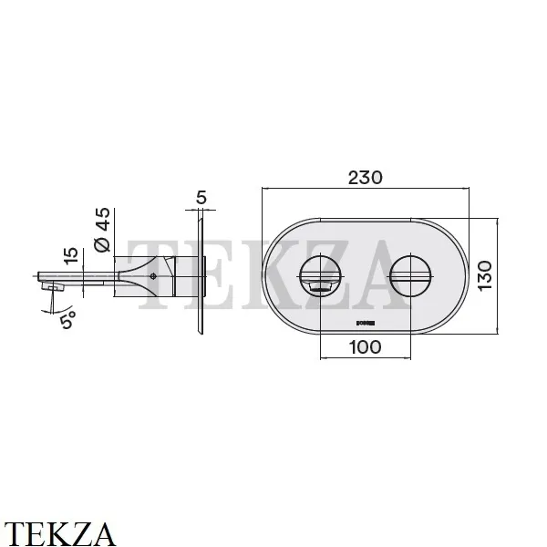 Смеситель раковины Bossini APICE, с цельной панелью, внешняя часть.
