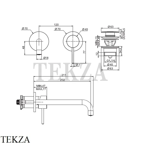 Смеситель для раковины однорычажный настенный, FIMA Carlo Frattini Spillo UP, внешняя часть.