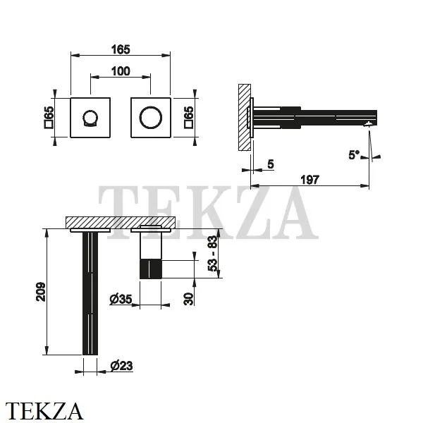 Смеситель для раковины на стену Gessi Incastri, внешняя часть.