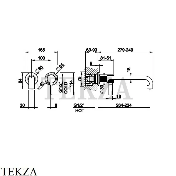Смеситель для раковины настенный однорычажный Gessi INCISO, внешняя часть.