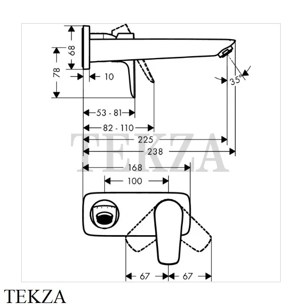 Смеситель для раковины Hansgrohe Talis E настенный, внешняя часть.