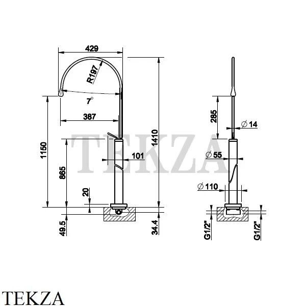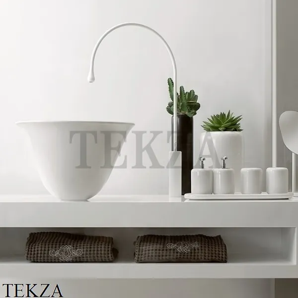 Однорычажный напольный смеситель Gessi Goccia с длинным изливом радиус 19,7, без донного клапана.