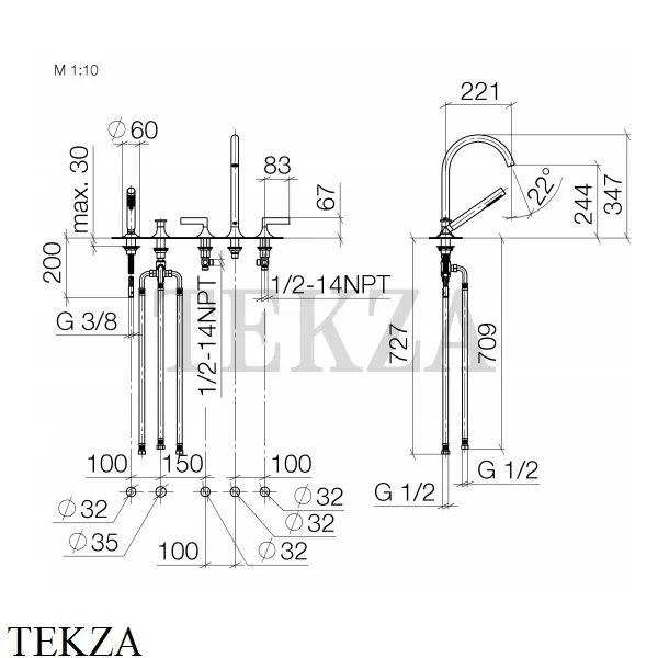 - диаметр отверстия под излив 32 мм