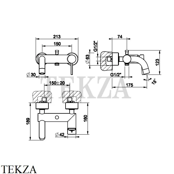 Смеситель для ванны однорычажный Gessi Via Tortona с переключателем ванна-душ.