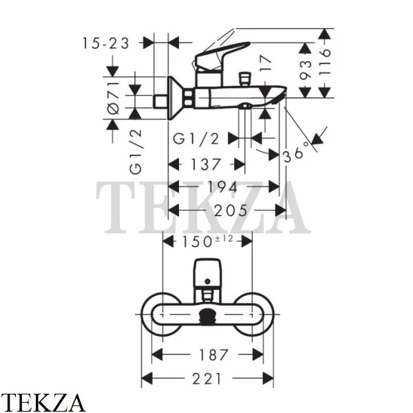 Смеситель для ванны Hansgrohe Logis, однорычажный.