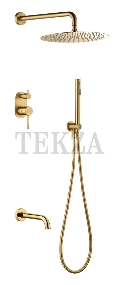 Комплект душевой: смеситель встроенный с изливом + верхний душ + ручной душ Boheme Uno 464-2-MG Matt Gold.