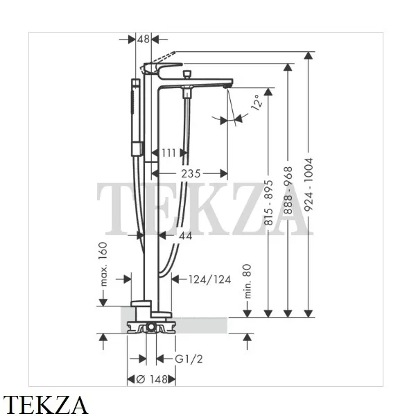 Смеситель для ванны напольный Hansgrohe Metropol, с рукояткой-петлей, с душевым гарнитуром.