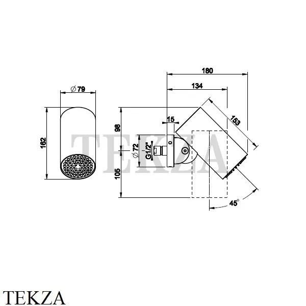 Душевая головка для настенного крепления Gessi SPOTWATER316 CESELLO, поворотная с шарниром.