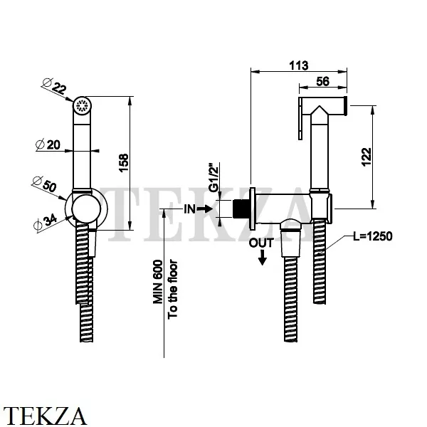 Гигиенический душ с держателем и выводом на 1/2 Gessi TOTAL LOOK