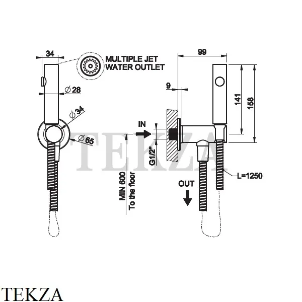 Гигиенический душ на 1/2 Gessi INCISO SHOWER с держателем и выводом для шланга.