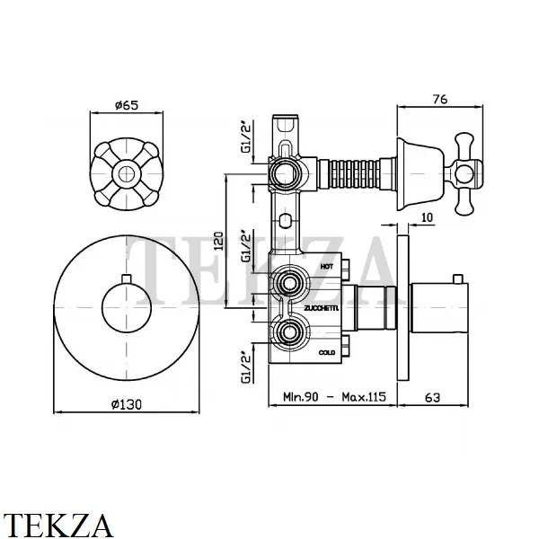 Термостат для душа Zucchetti Delfi на 1 выход 3/4, внешняя часть.