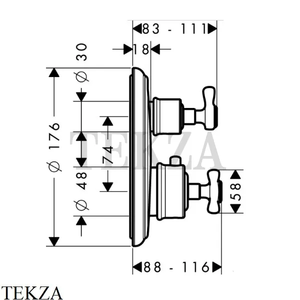 Термостат с запорным/переключающим вентилем Axor Montreux, СМ